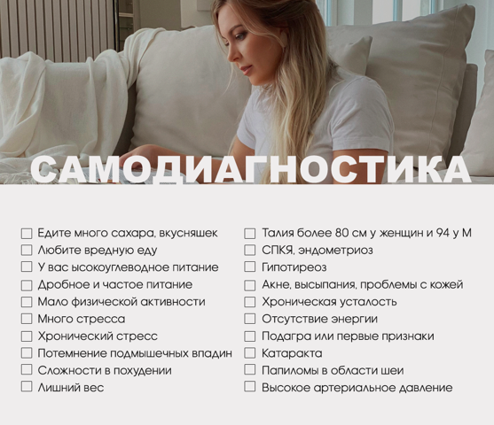 Если у вас нет противопоказаний, но из списка симптомов вы обнаружили свои, то, вероятнее всего, у вас есть признаки инсулинорезистентности. Она развивается медленно, в течение 10-13 лет, но потом резко может перерасти в диабет 2 типа. Чтобы этого не допустить, нужно понять, что происходит не так и почему вы набираете вес. дело в инсулине, кортизоле и других гормонах. Вероятнее всего, ваш рацион составлен неправильно и в нем много некачественных вредных продуктов, которые следует исключать всем, кто хочет быть здоровым. Именно это мы разбираем на марафоне, питаемся по моему меню и худеем, уменьшаем количество вредных углеводов, добавляем больше овощей, делаем рацион насыщенным и богатым витаминами и нутриентами, которые необходимы для нашего организма. Кето - 100% помогает худеть. На сегодняшний день никакая другая диета не может похвастаться таким активным сжиганием жиров без потери мышечной массы. При этом есть вы будете полноценно, не урезая калории, еда будет богатая, вкусная и разнообразная.